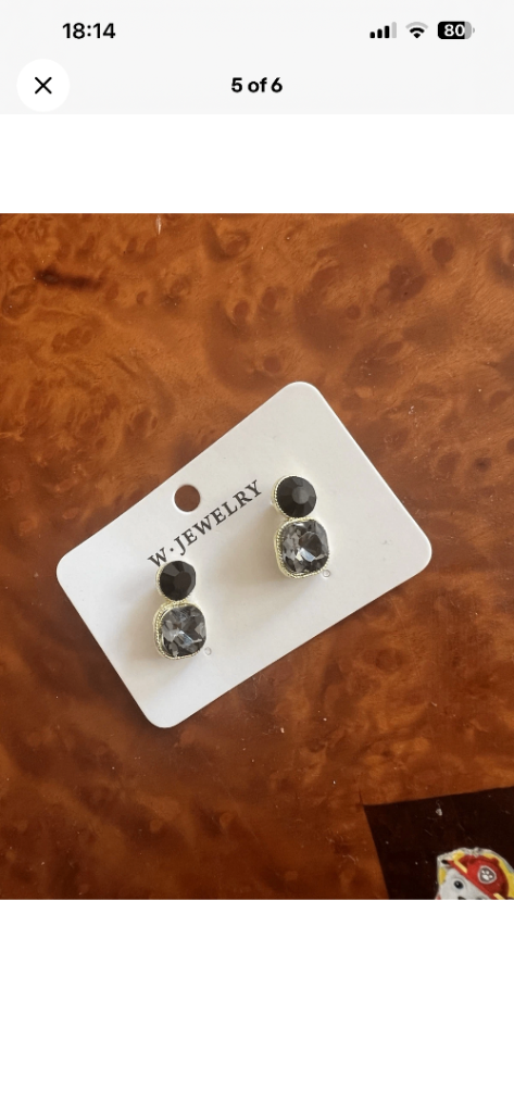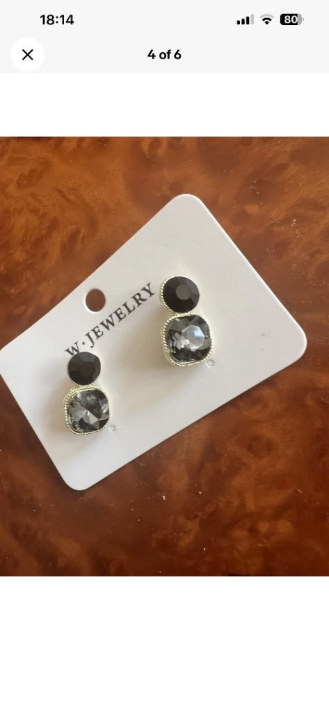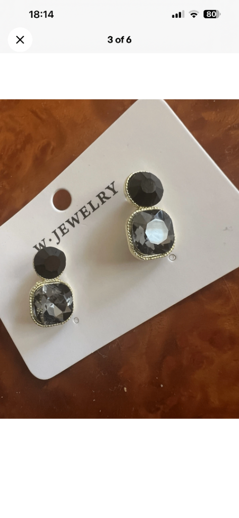 Features a dark crystal stud with a larger square crystal drop.