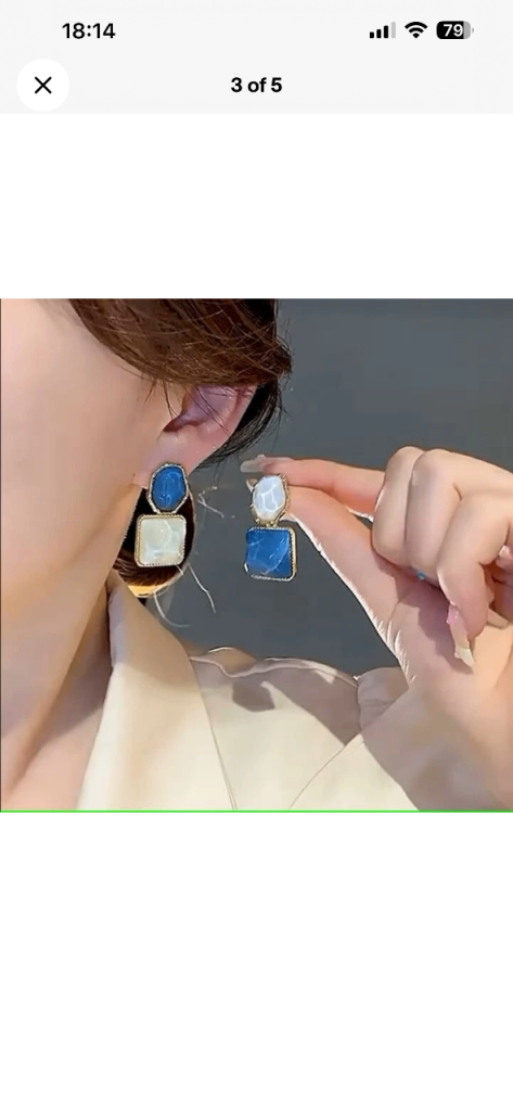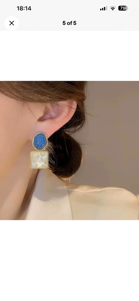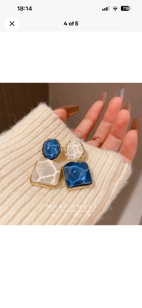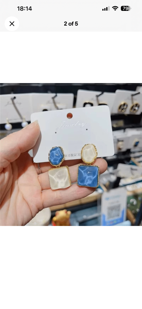 Lovely pair of blue and white drop earrings, brand new on the card.