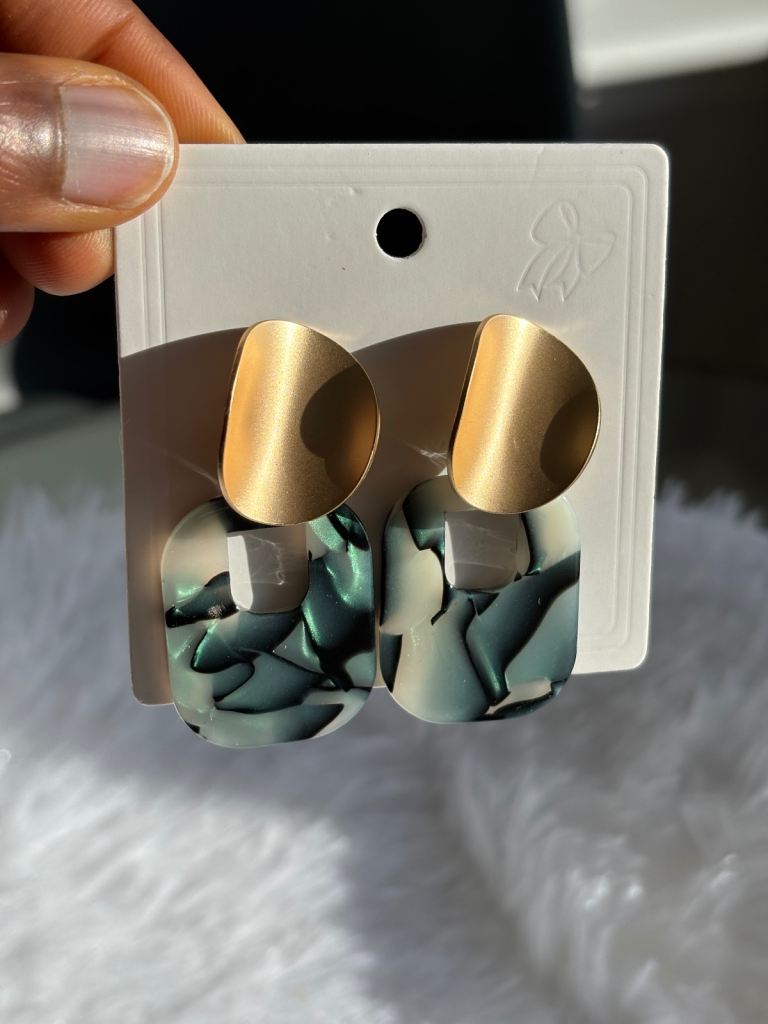 Features a chic gold-tone top with a marbled green and white resin dangle.