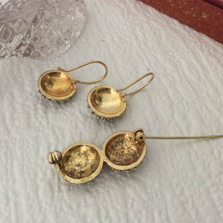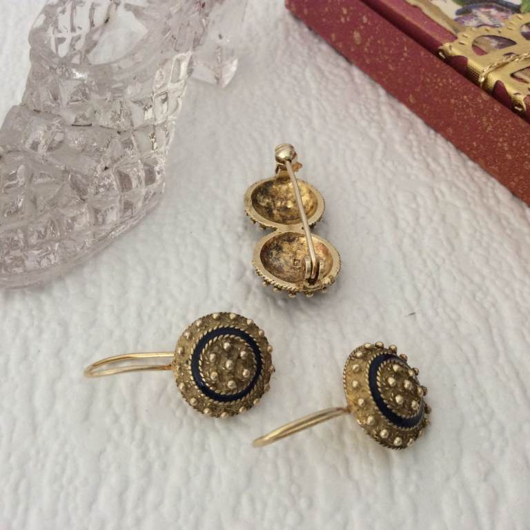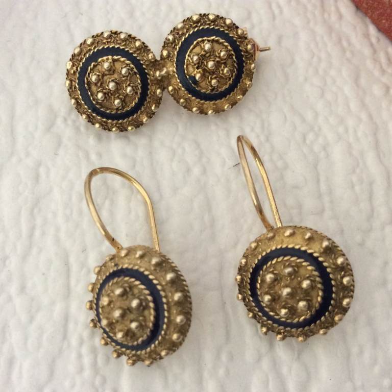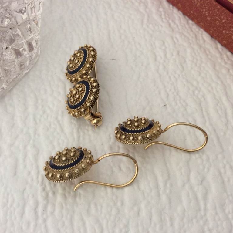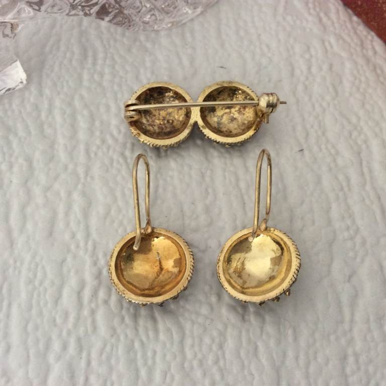 Description - vintage Portuguese traditional Viana style jewellery brooch and earrings set.