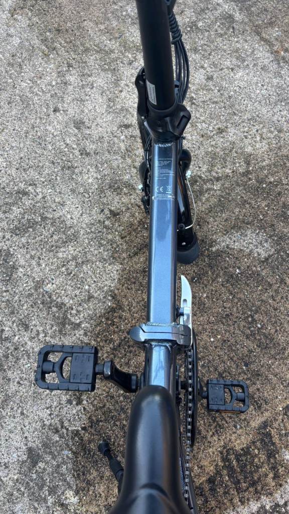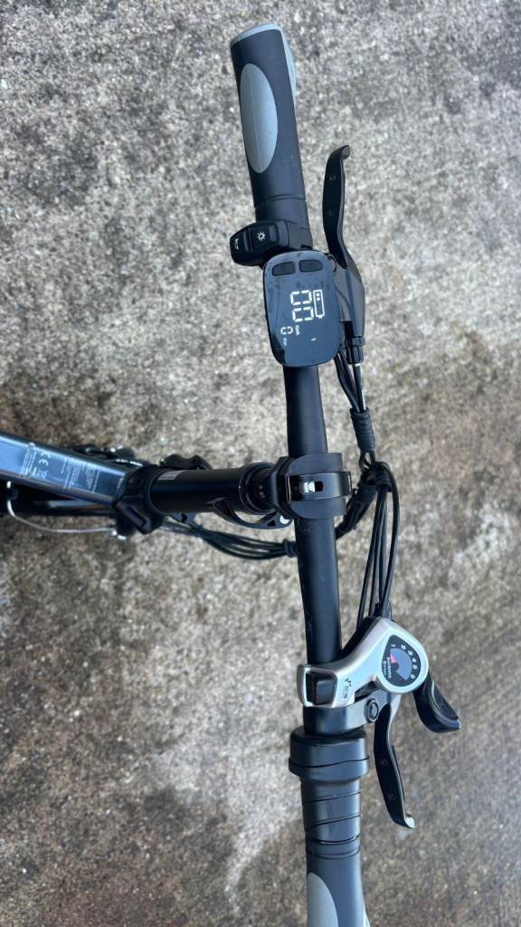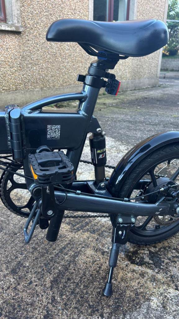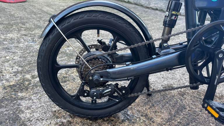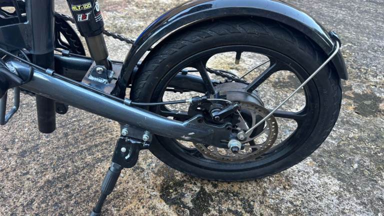 This is a folding electric bike. It is extremely lightweight and easy to fold so it can easily fit in the boot of a car, in your home or on a train as it measures just 29.5 x 25.6 x 13.8 inches when folded. It has a 250w motor and a 36v 7.8 AH lithium battery which is built in and can produce speeds of up to 25km/h and lasts for up to 50km. You can choose between pure electric, pure pedal or an electric assist so you pedal too. It has high quality front and rear LED lights, USB phone holder and speed controller in the handle. It has 16 inch rubber tyres with anti-slip texture. It also has disc brakes for safety in all weather conditions.