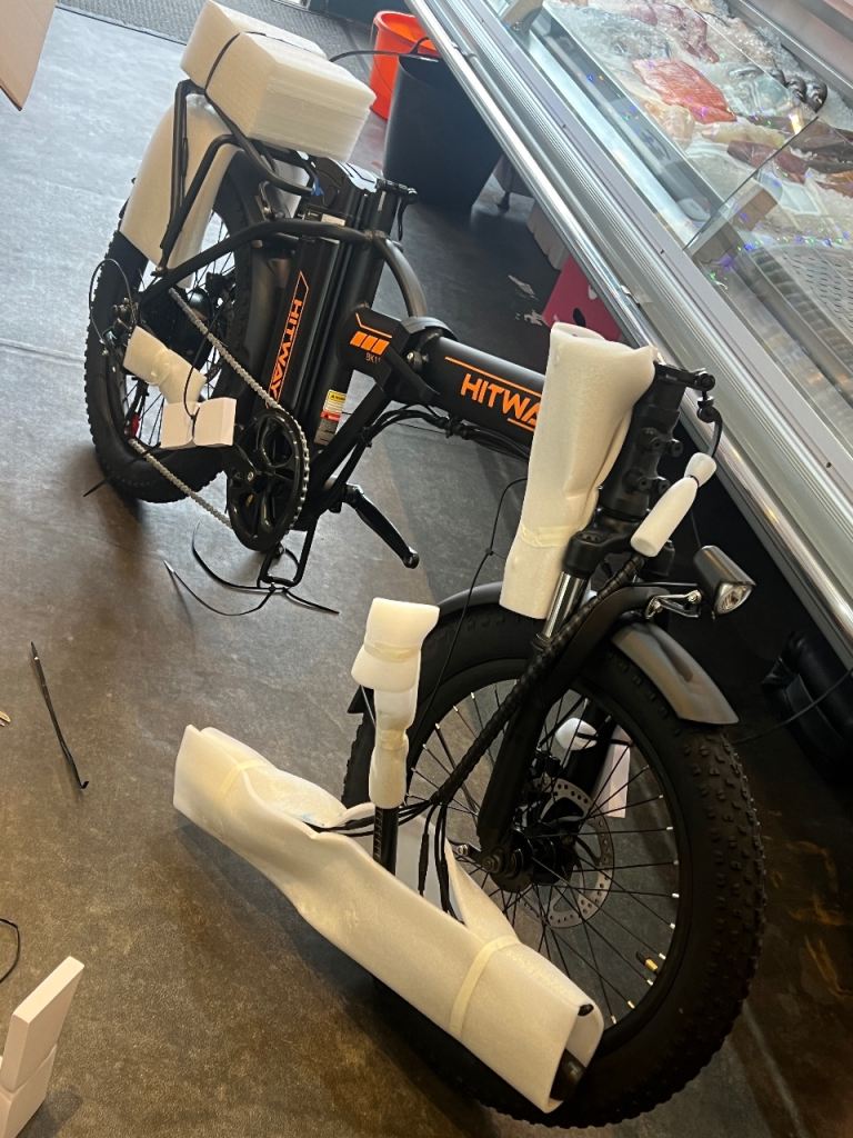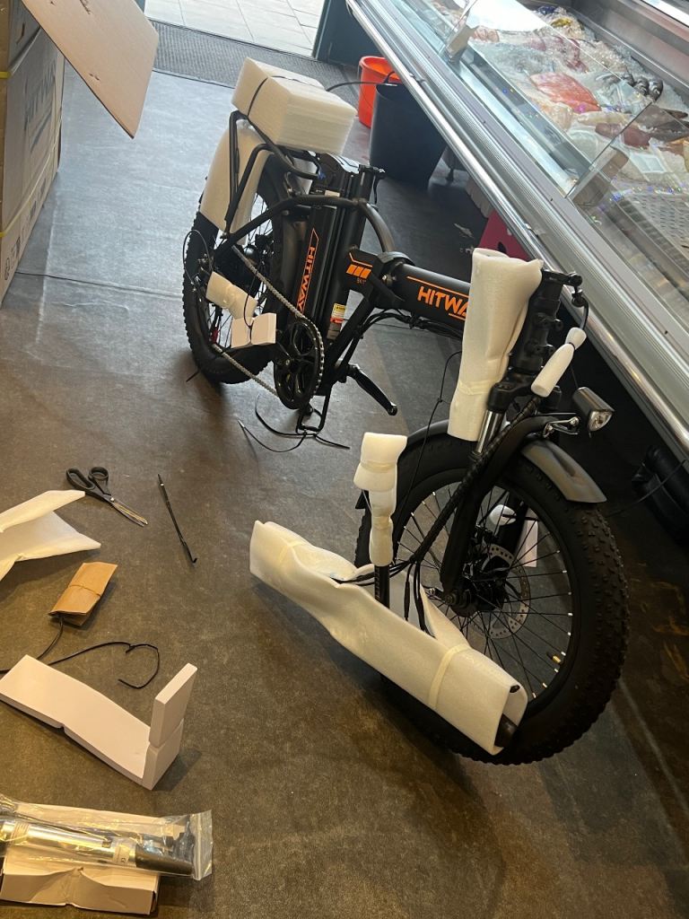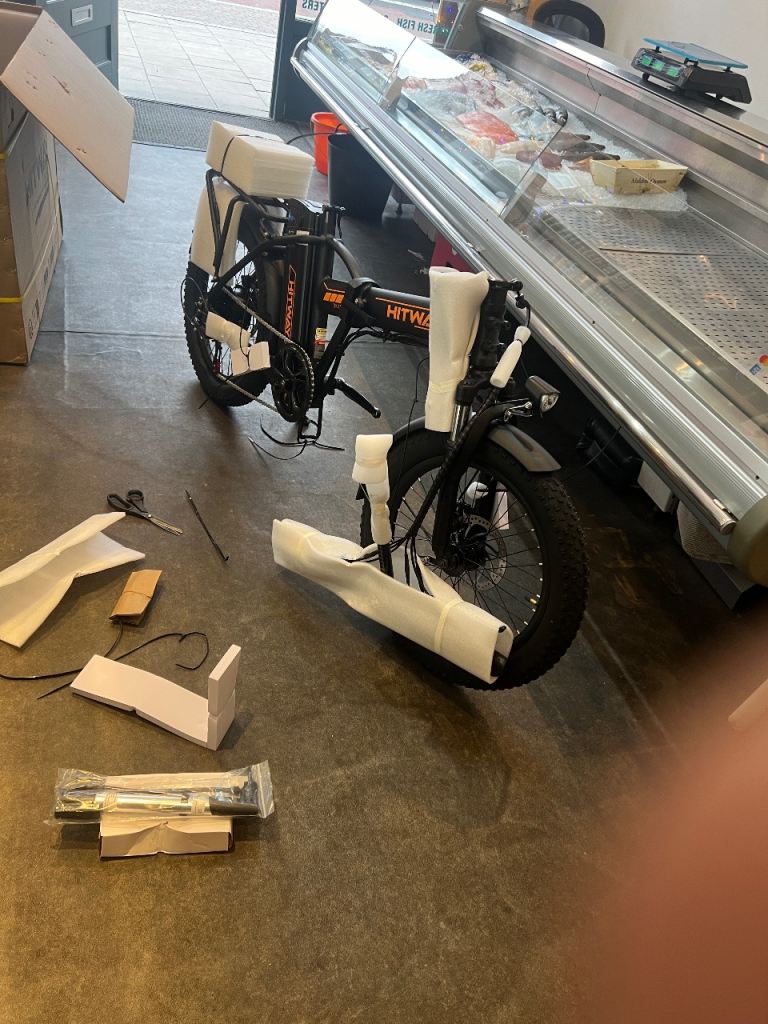 Brand new electric bike, brand new tyres I just used bit time.100 percent Everything is Brand new.you can see the pictures. These are original piks of bikes.3/4 hours working on 1 time charge.i have a kit complete. I bought brand new ( Box pack). I am first owner. I have complete file of this Bike.