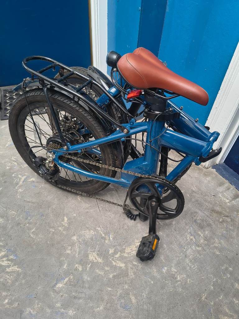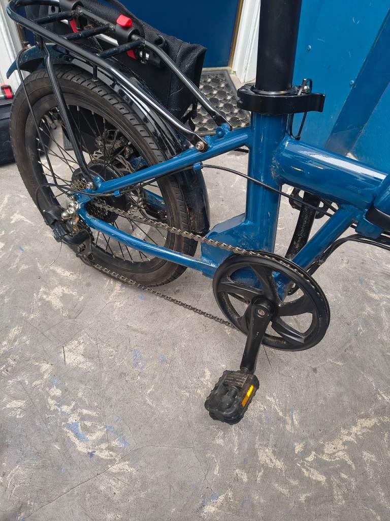 Road legal folding electric bike. 500km on speedometer, just fitted with fresh chain & rear cassette. 7 gears, 5 levels of battery assist. Battery integrated into the seat post and lockable for added security.