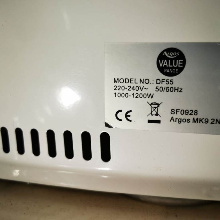 Argos Upright Electric Room Heater 800w Safety Switch underneath that turns heater off if it's accidentally knocked over.