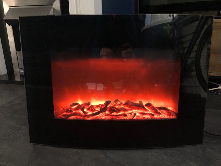 Black Glass Electric Fireplace Suite with Remote and Plinth