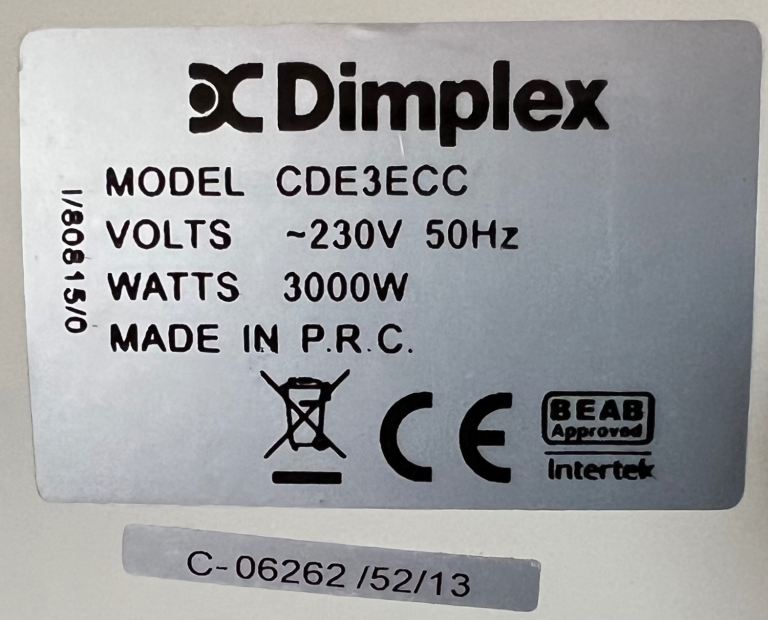 Dimplex Cadiz CDE3ECC Oil-Free 3kW Heater - Full Working Order - Loose Cable Cover