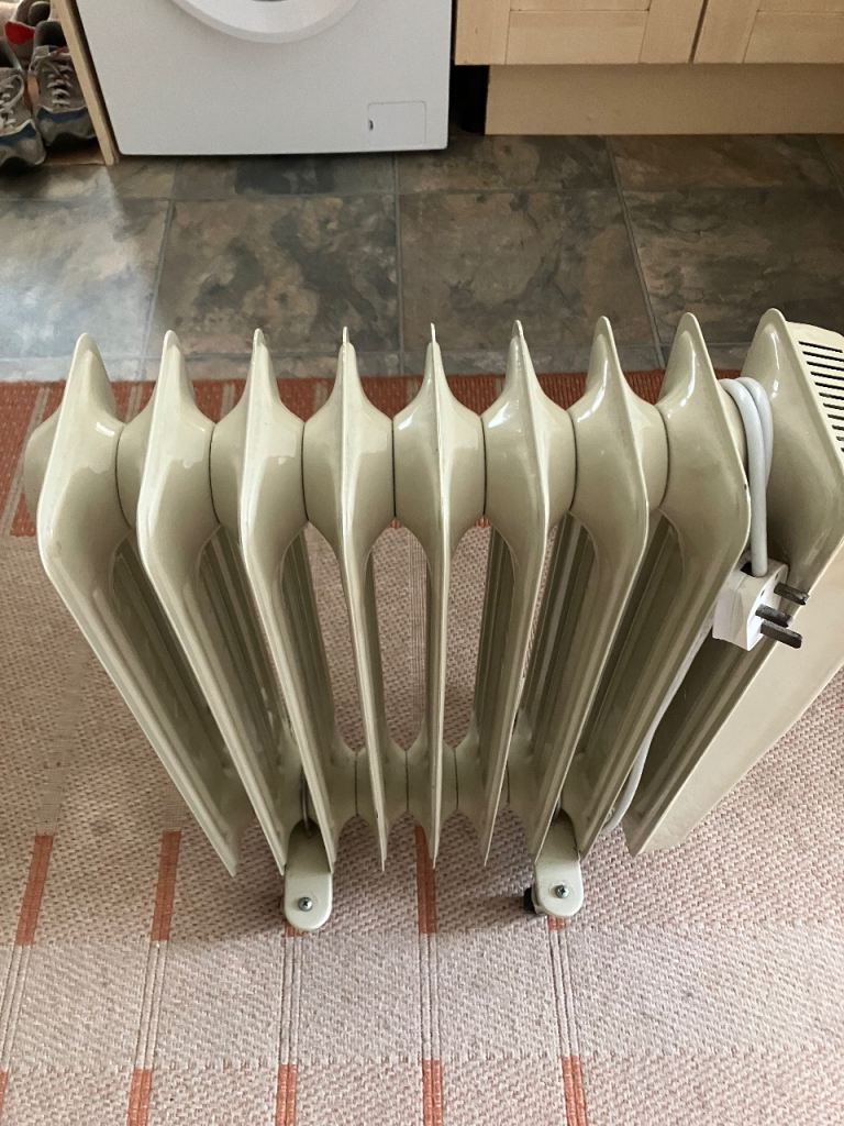 Electric oil filled radiator can leave on low setting as background in gwo With wheels