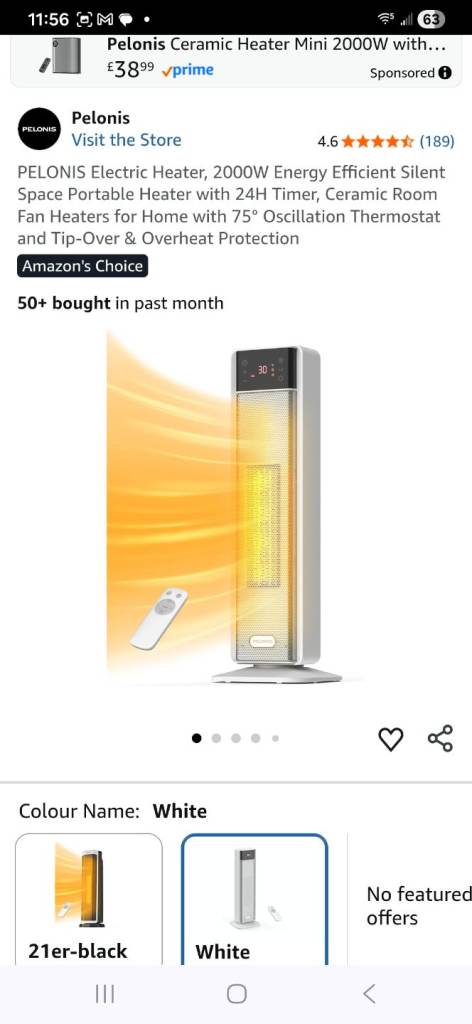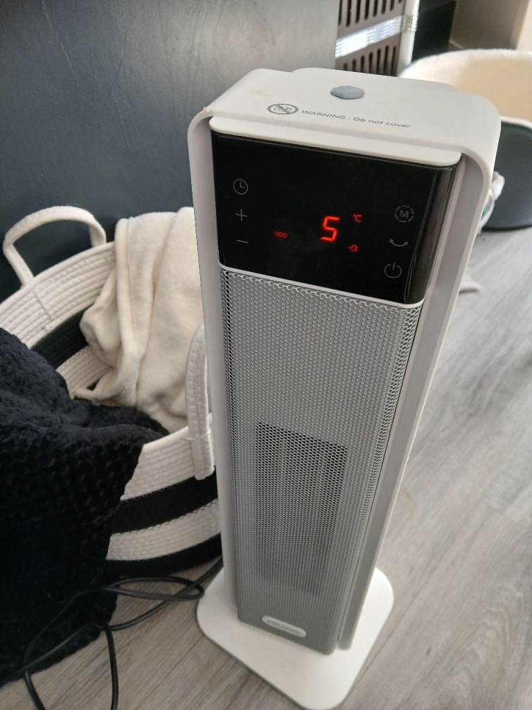 Heater with remote control with many heat settings. Energy-efficient, 24 hour timer, 75 oscillation. In ver good condition