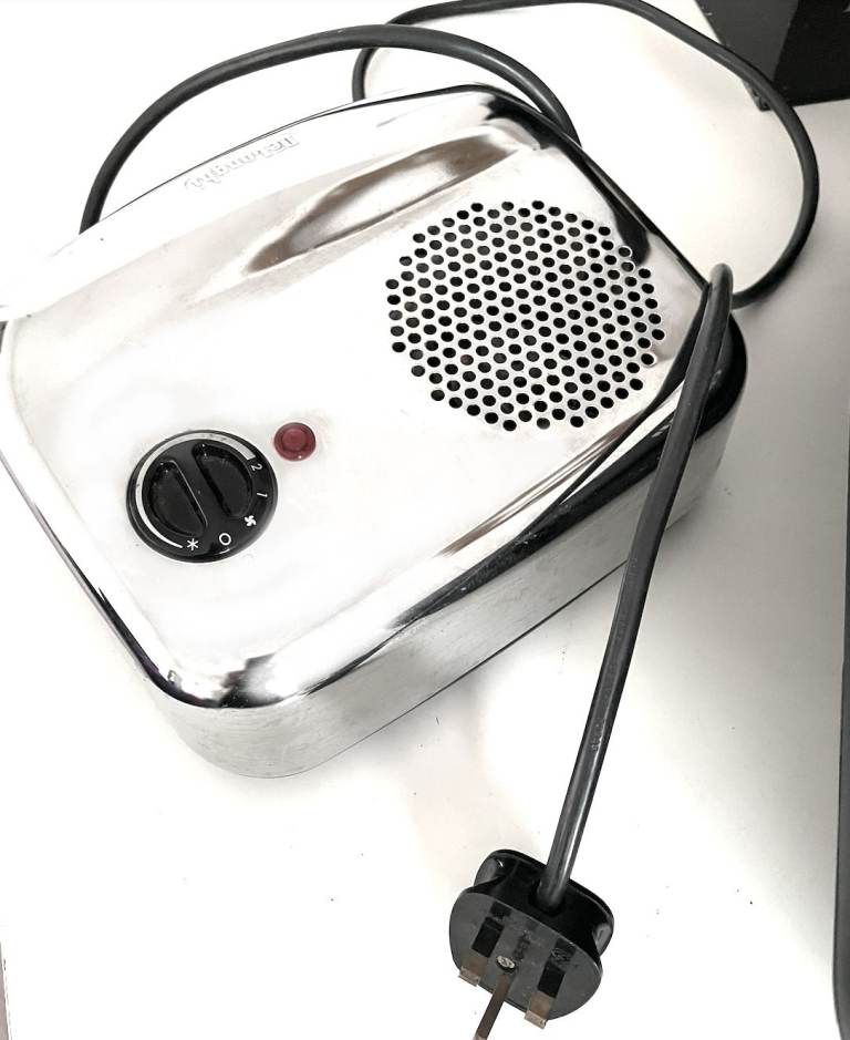Super stylish small retro fan&heater from Delonghi in silver (metal outer - not cheap plastic)