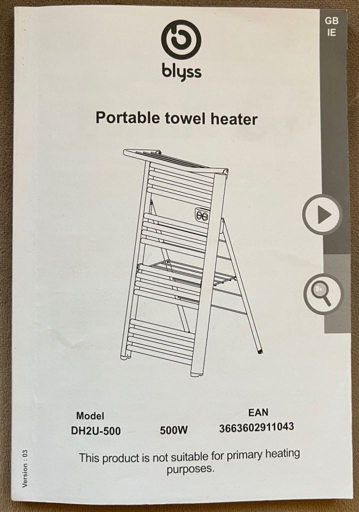 Blyss portable electric towel heater - excellent condition