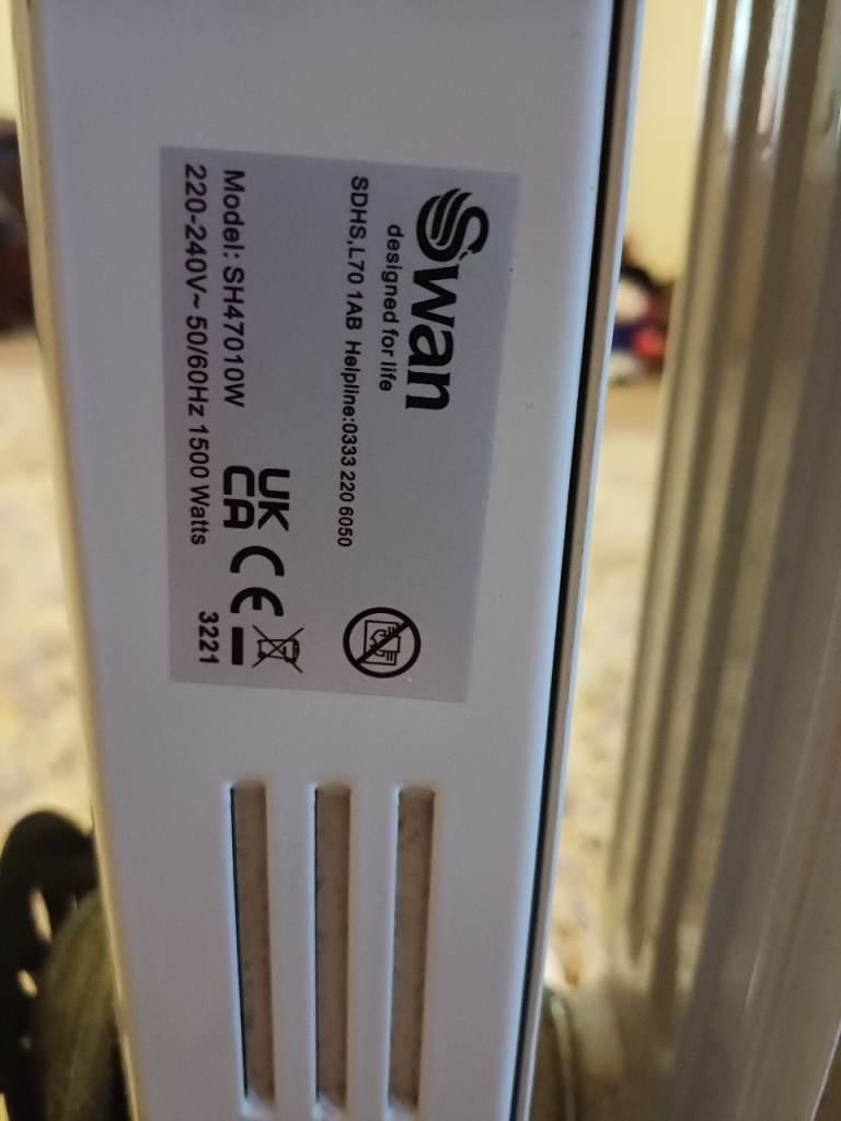 Swan oil filled radiator, no longer needed good condition just need a wipe over as been stored in spare room. Collection only