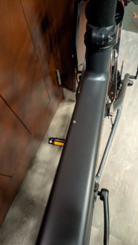 There is a small chip in the paint work along the top tube as shown in the photos. The bike already had this chip when I purchased it.