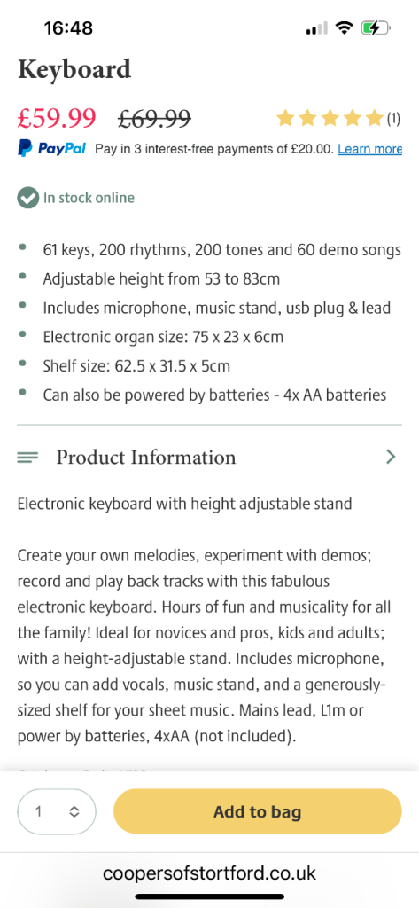 Brand new electric organ with stand. Unopened.