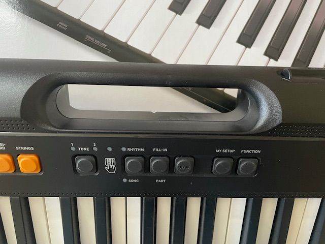 Full-size 61-key keyboard with integrated carrying handle.