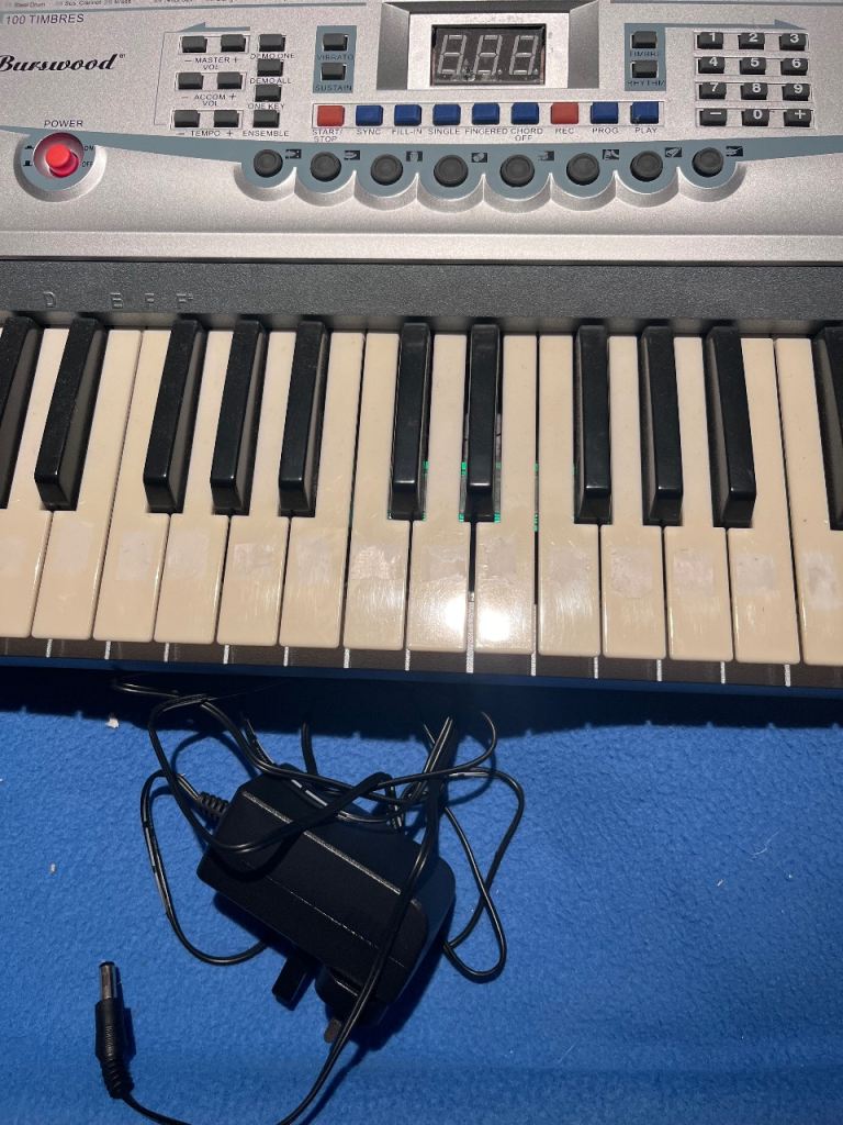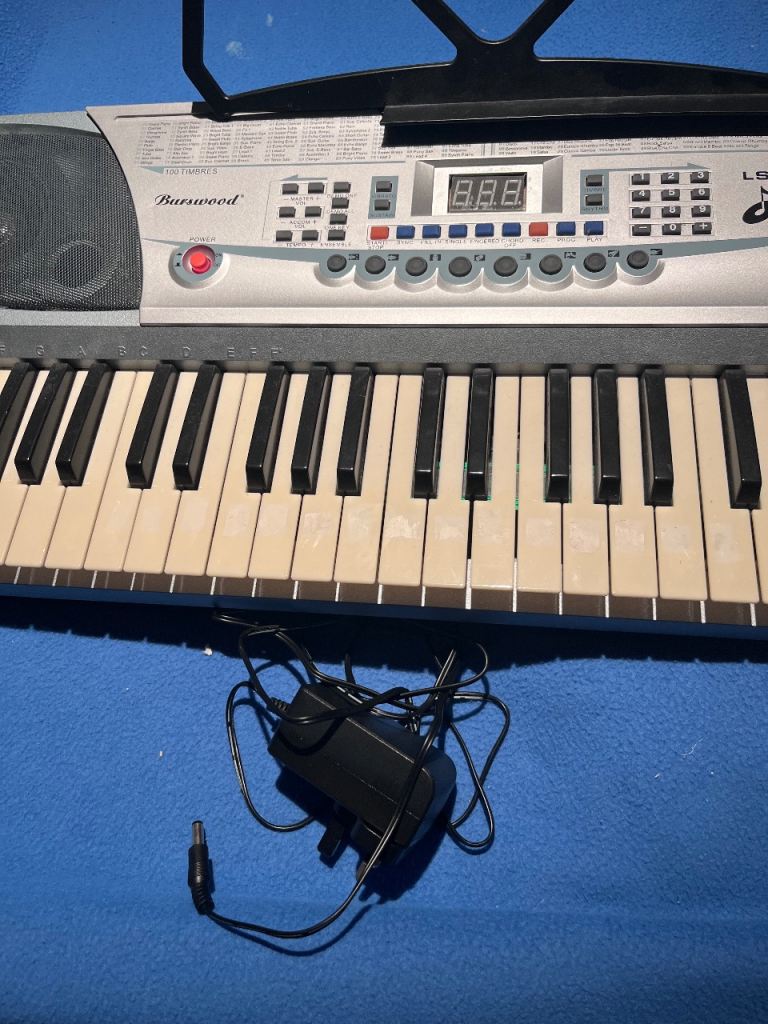 Burswood electronic keyboard with stand in very good condition . Fully functioning with power cable or can be used with batteries . Metal stand also included in price