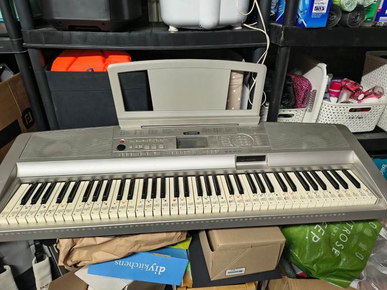 "The Yamaha Portable Grand DGX-300, released around 2002, is a 76-key, touch-sensitive electronic keyboard designed as a bridge between home keyboards and performance pianos, featuring a large speaker system, stereo sampled grand piano, 6-track recorder, built-in disc drive for MIDI files, over 600 voices, 120 rhythms, and a pitch bend wheel for expressive playing."