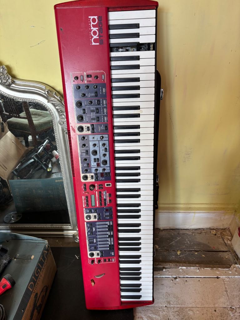 Notd Stage 88 key , synth. Boots up sometimes but theres a constant tone when it does. Use for spare parts or repair. £3k new , so might be worth the effort.