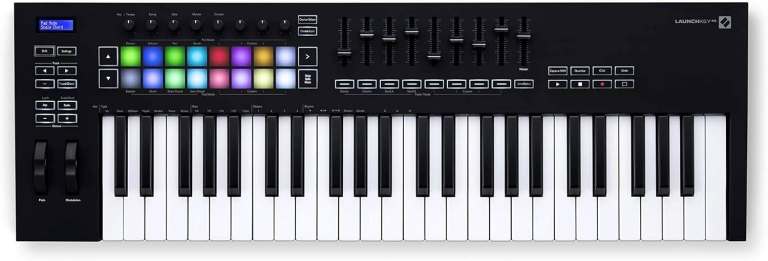 No matter your genre or level of experience, Launchkey 49 gives you everything you need to create intuitively and expressively with Ableton Live. Launchkey 49 features a synth action keybed, velocity sensitive pads, essential transport controls, and nine 45mm faders.