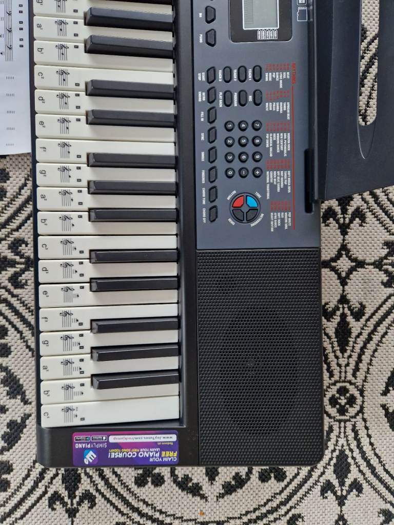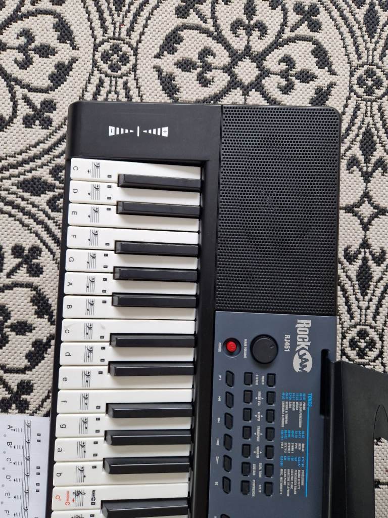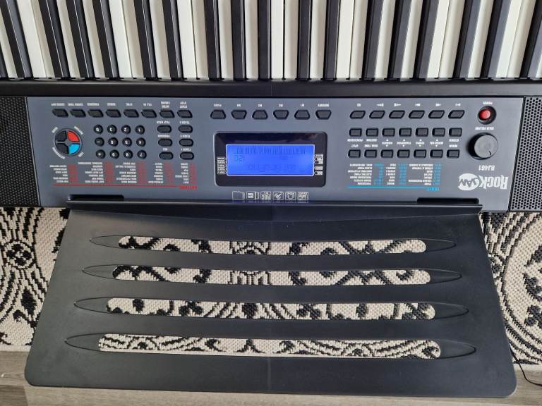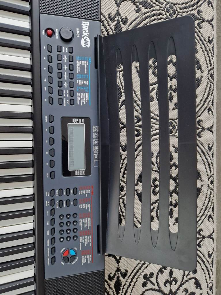 The RockJam RJ461 is an Electric Keyboard with 61 keys, perfect for starting your musical journey. This black keyboard by RockJam is compact size and beginner-friendly experience make it an ideal choice for aspiring musicians looking to explore the world of music. It has been opened but the keyboard has never been used.