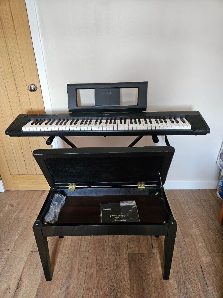 Hardly used NP32 keyboard which comes with stand, cover and bench which has storage for music books.