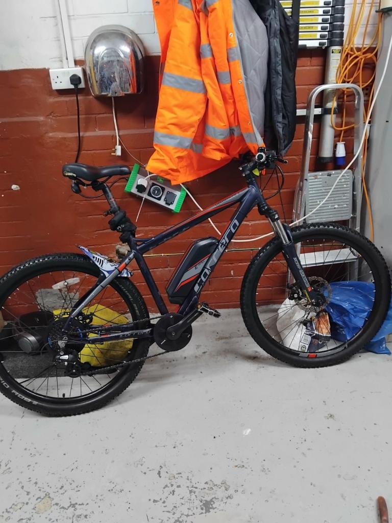Carrera e spec peddle assist electric bike 21 inch frame 27.5 inch wheels everything works as it should as slight buckle on back wheel comes with 2 x batteries and 1 key and accessories bargain @ £400