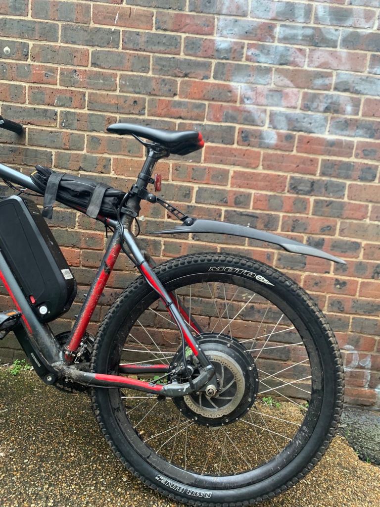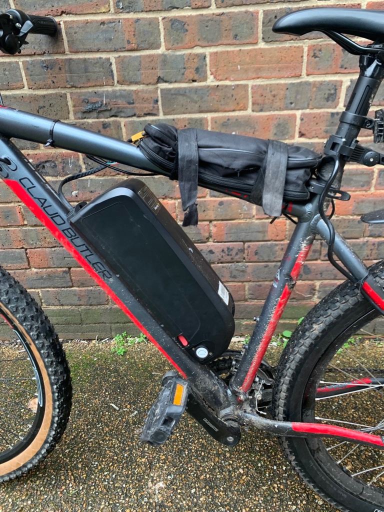 Claud Butler electric mountain bike, converted with a 2000W rear hub motor and a 48V 20AH battery.