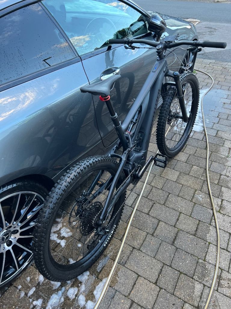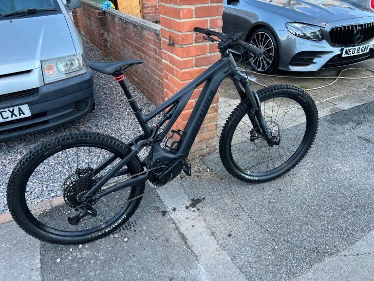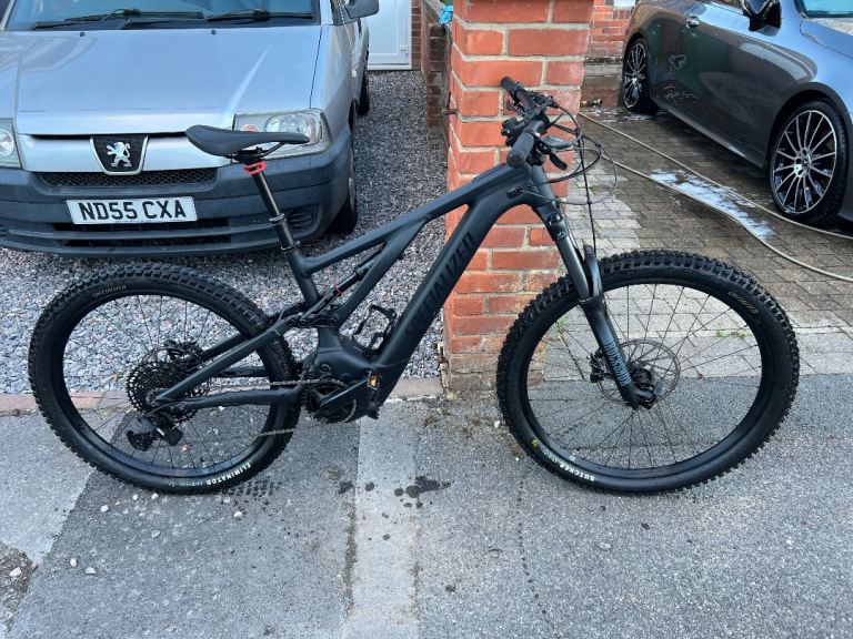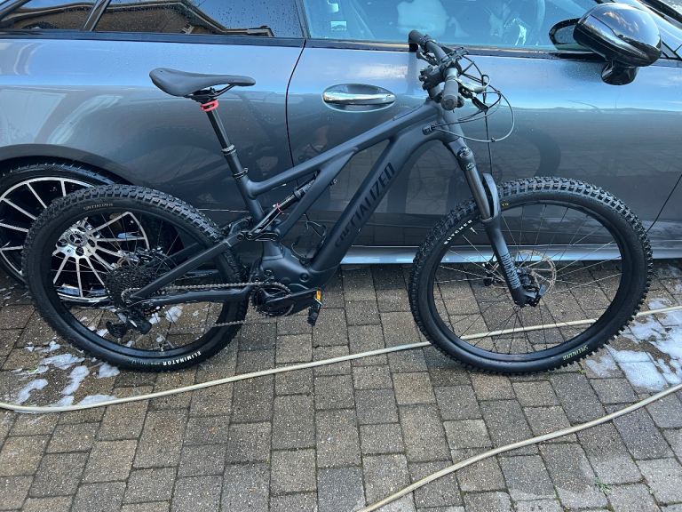 Here I have my Specialized levo in a large if you are usually medium I found the medium in this bike to small hence white I got the large.