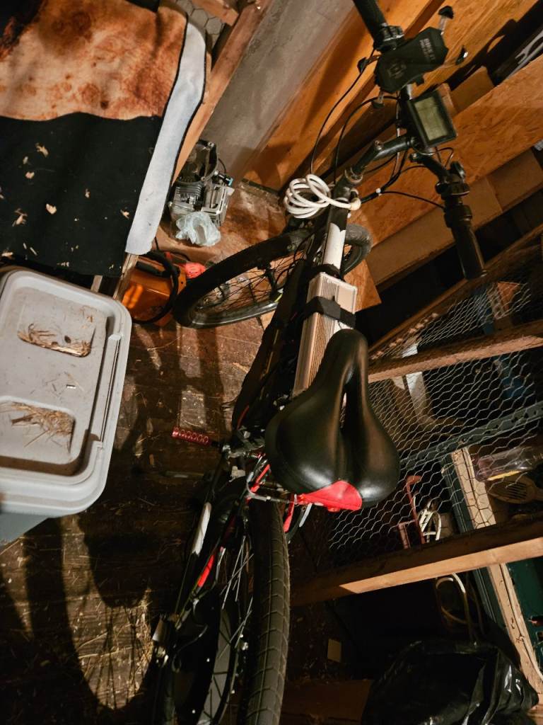 Has a top speed of around 40mph fully charged on flat ground. Goes up to 48 on a downhill. Comes with a charger and a spare set of brake pads. Tyres are almost new.