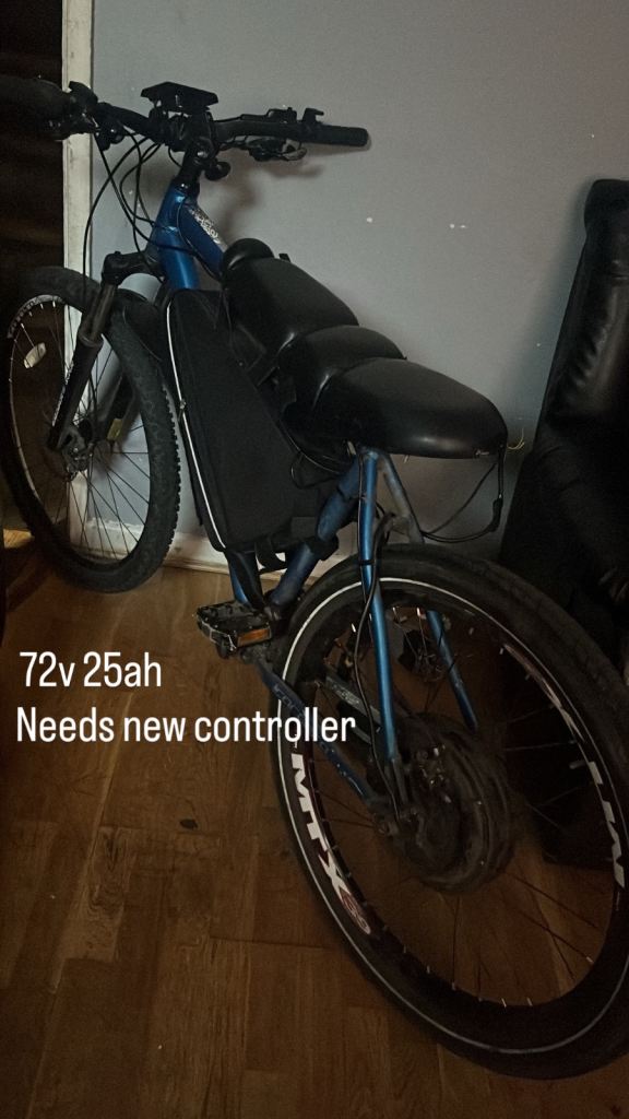 52v with a 1000w motor peaks around 1650w on a large c100 frame does 45mph🚀