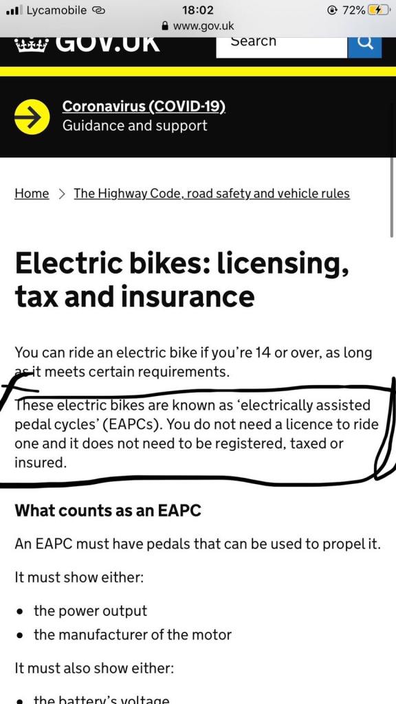 This electric bike is road legal as it powered by a 250w motors and the battery is 48v which qualifies it as an Electric Bikes, therefore: it comes with pedals and is classed as BICYCLE it has pedals that power the bike aswell