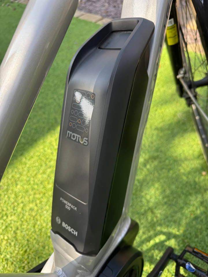 The Motus Grand Tour is fully equipped with extra features and quality components such as disk brakes for ultimate stopping performance, reflective ebike-specific tyres, a bell, wheel lock for added security, adjustable handlebar stem, suspension saddle and integrated lights. Plus derailleur gearing system. Immaculate only done 107.6 miles and garage stored. Collection from Chesterfield.