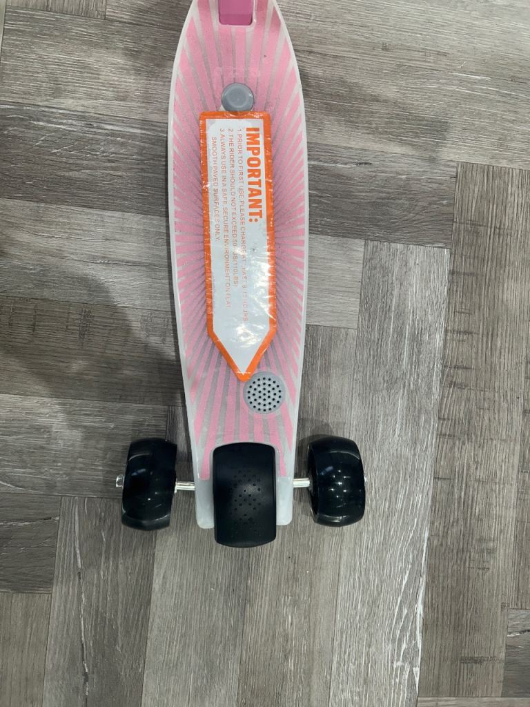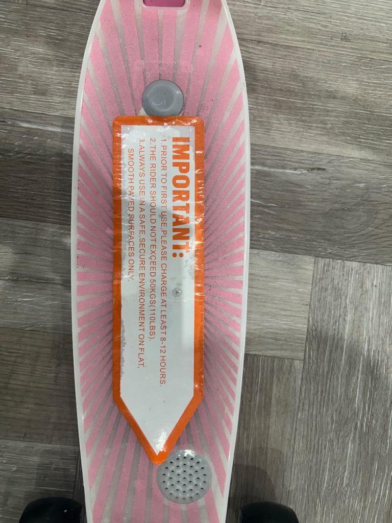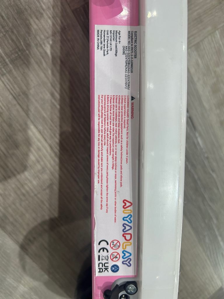 AIYAplayer electric scooter. Bought for Christmas but my daughter didn’t like it. Used once. Il be honest electric side of it isnt very good. Does give a little boost but still needs to be pushed. Plays music while riding. Payed £79.99 for this only a month ago.