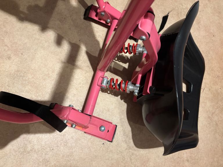 Cart has one slightly bent footrest. The front wheel has a pneumatic tyre for extra comfort.