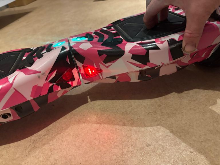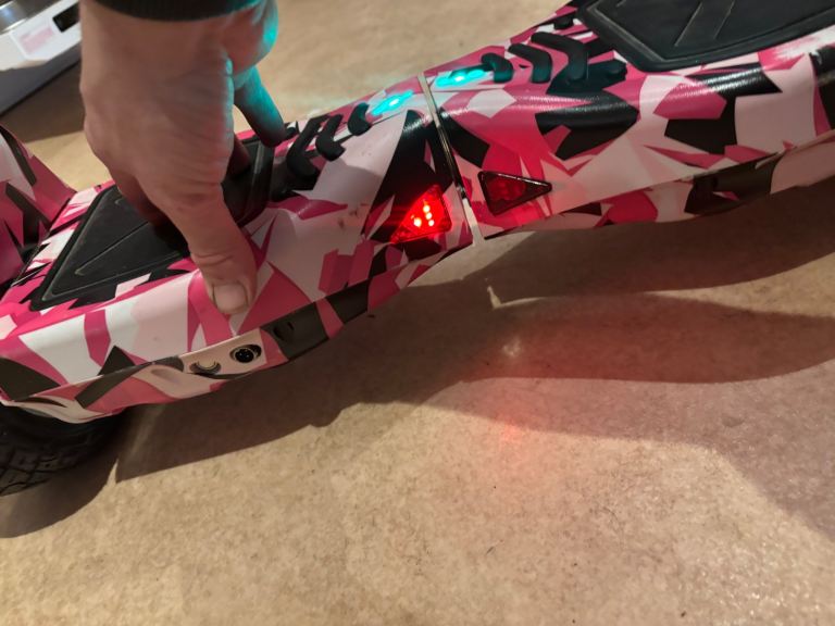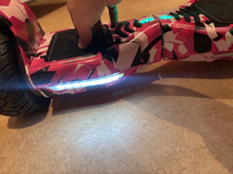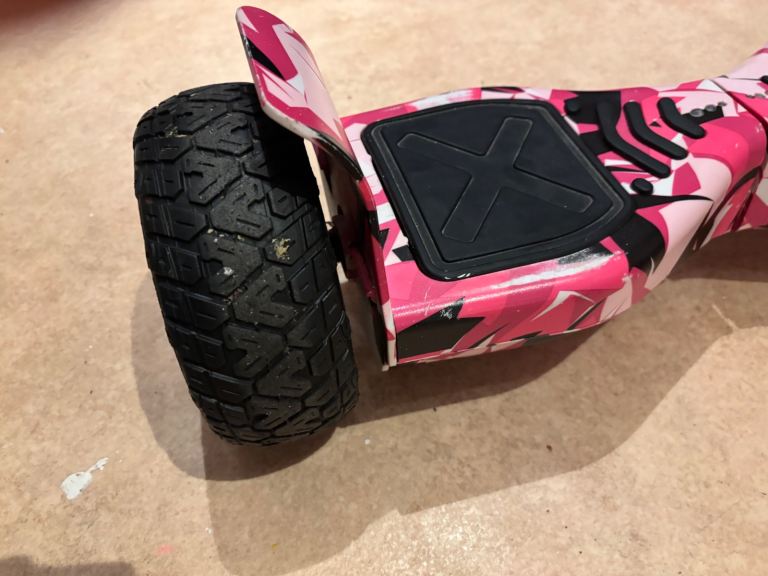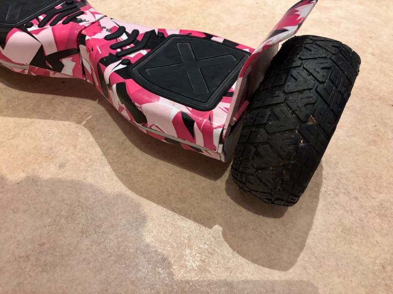 Hoverboard with chunky pneumatic tyres, in pink camo.