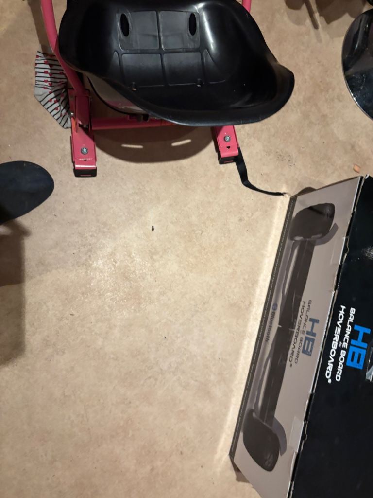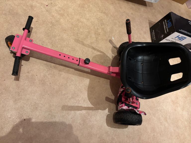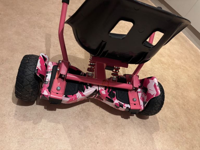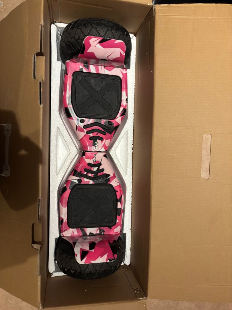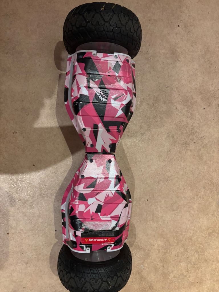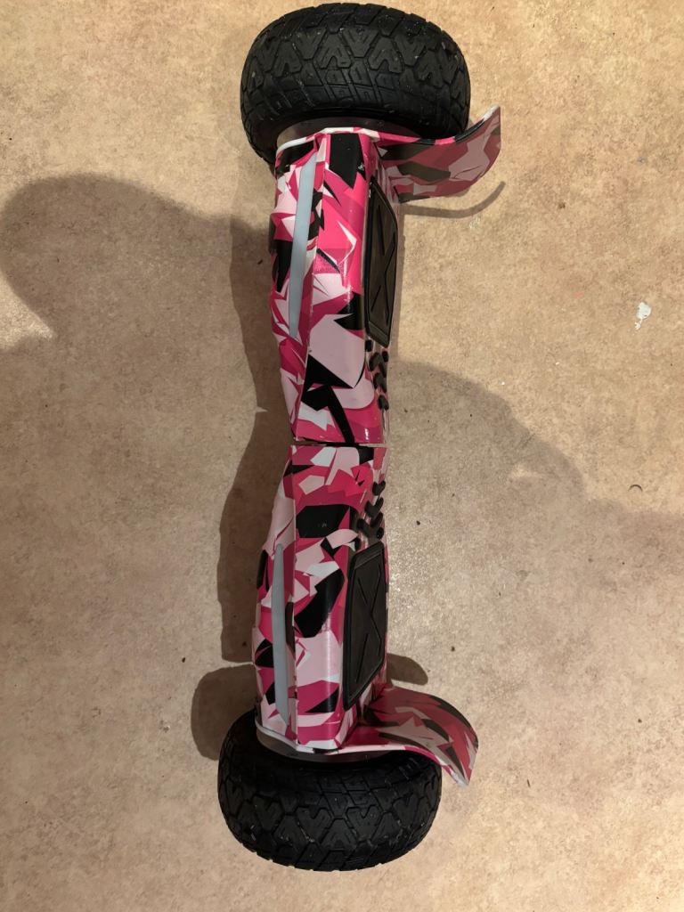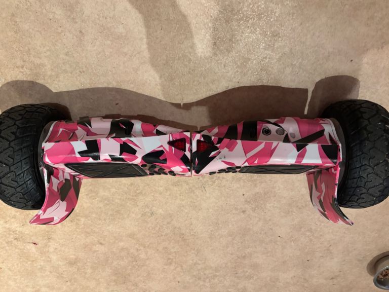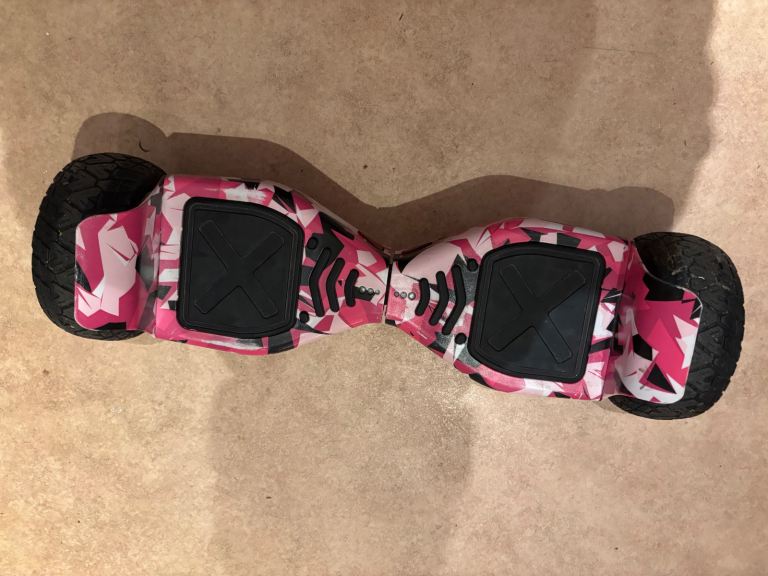 Posting for 14+ yearsPink camo multi terrain hover board, with cart and box. Good condition