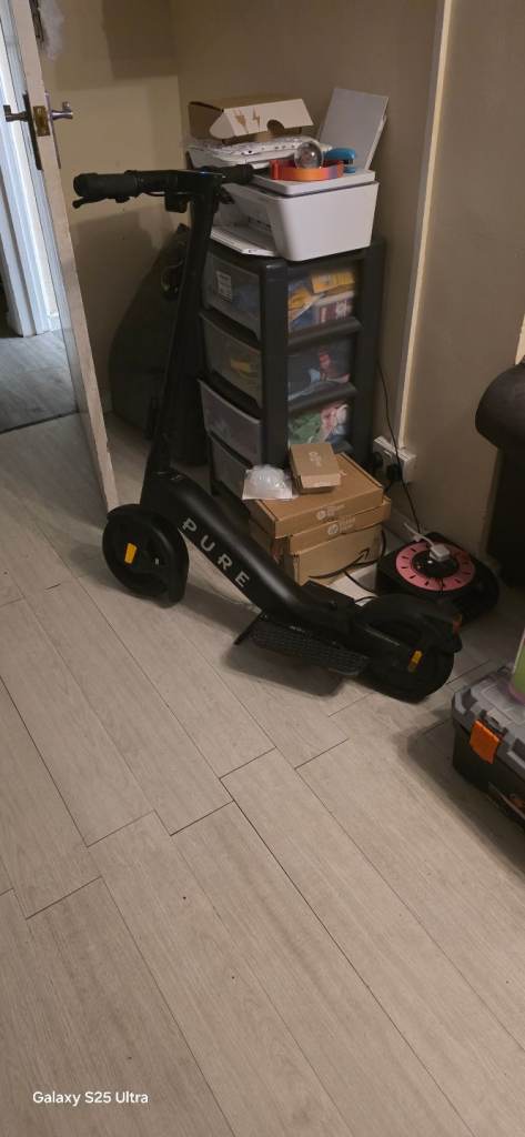 Pure Advance Electric E-Scooter used but in really good condition it comes with the original box and as got all the accessories it came with as well the only thing is the kick stand as come off but it is still with it and the back wheel is flat due to the fact that I haven't used it in a long time other than that it's in excellent working order.
