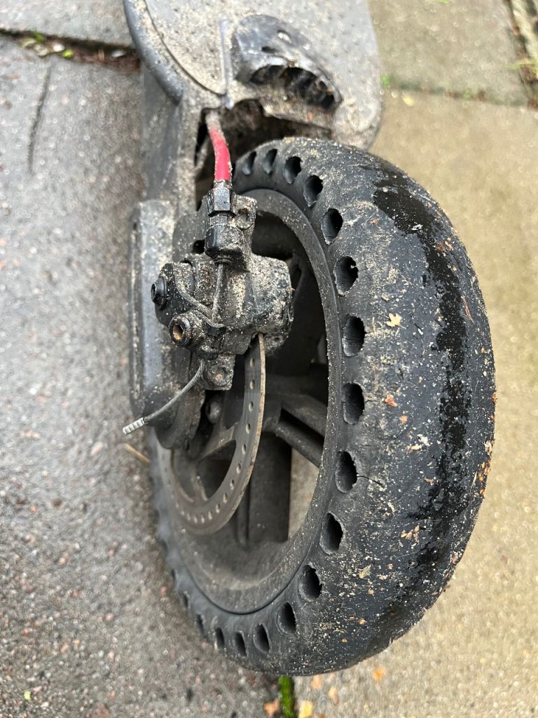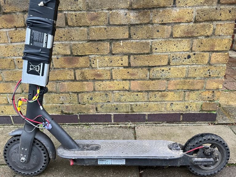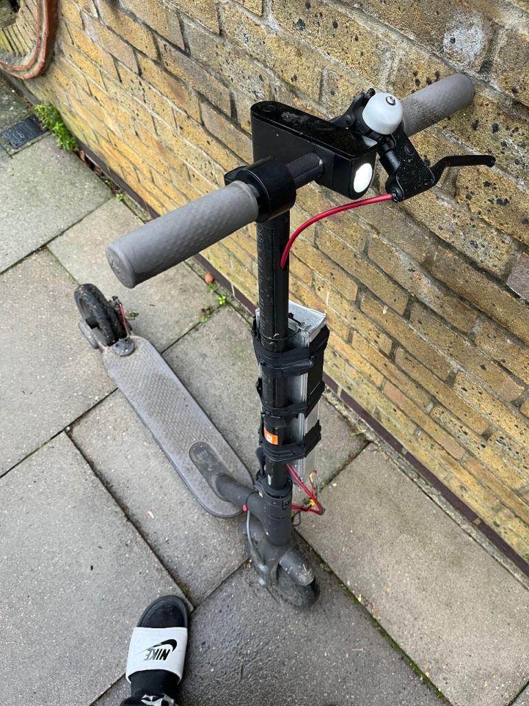 Used daily Dirty Xiaomi M365 electric scooter with Pro Silver Waterproof Battery fitted to pole