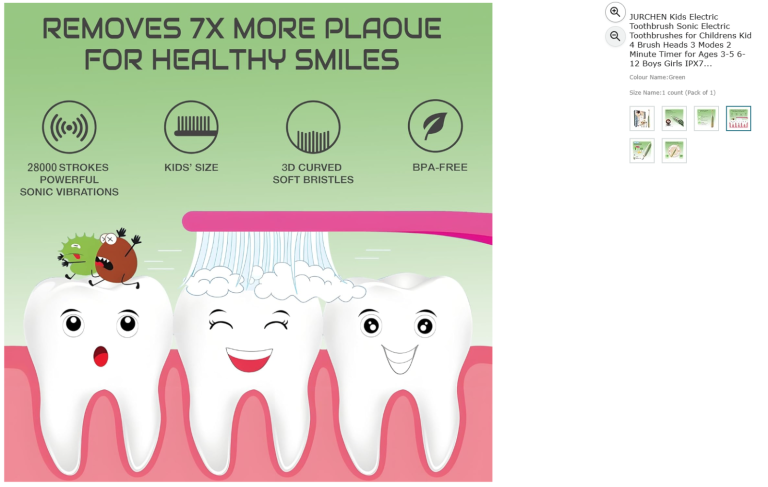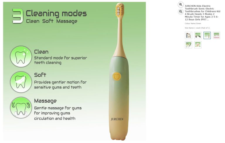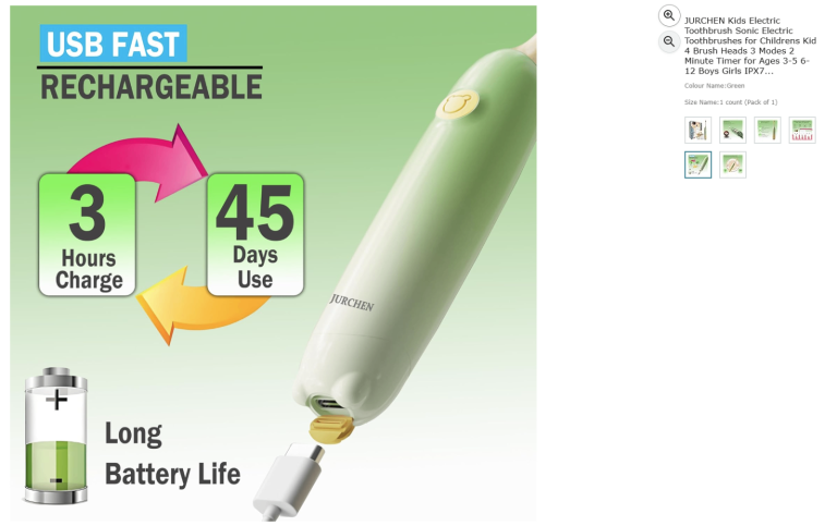 Sonic Electric Toothbrushe for Childrens, 4 Brush Heads 3 Modes 2 Min Timer|| New 50% off price