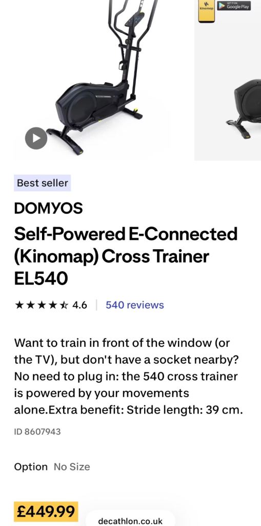 Sold on Decathlon Retail Price £449.99 Very good condition, used for less than one year, selling because I had to move house and unfortunately I no longer have the space for it