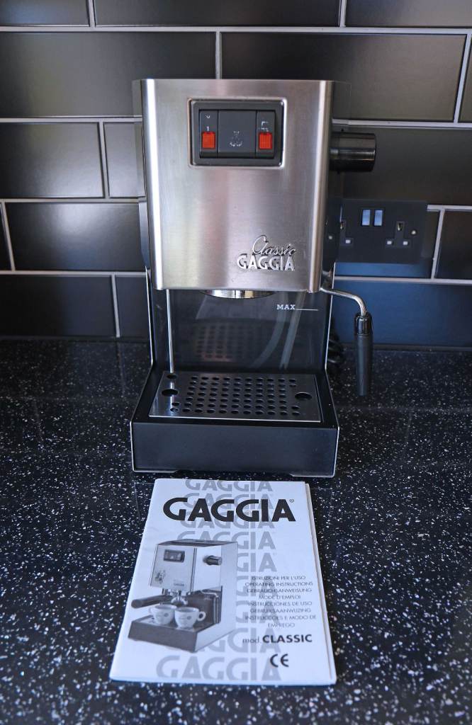 Includes all original Gaggia attachments and six Gaggia expresso cups and instruction booklet. Machine used in soft water area only therefore no limescale. In excellent working condition. Collection only.