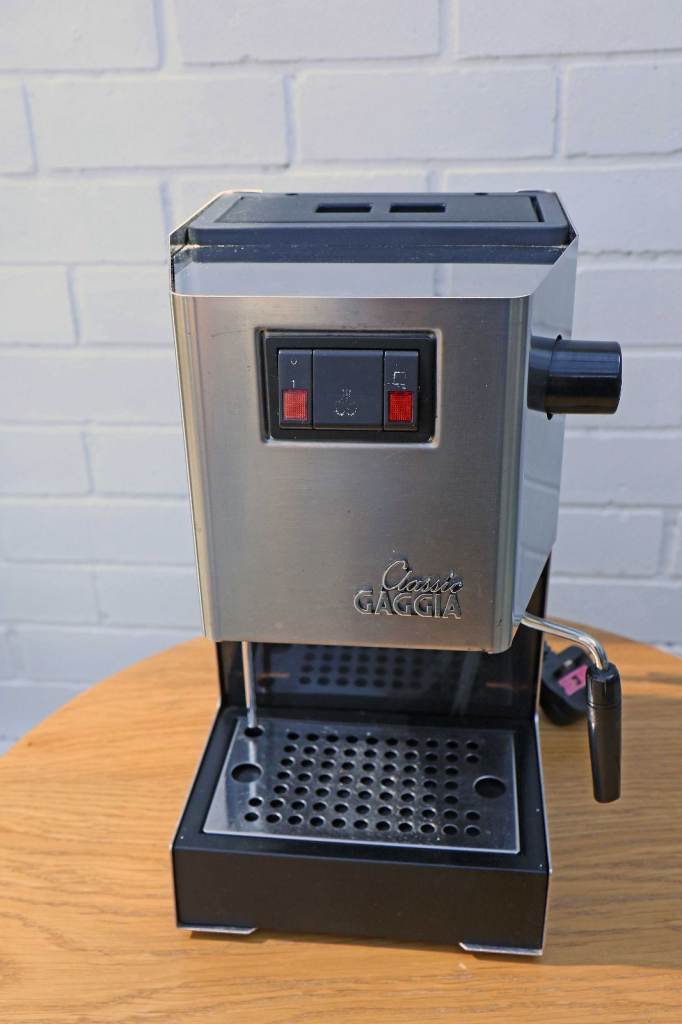 The Gaggia Classic Espresso Machine is a stylish and efficient appliance that brings the taste of Italy right into your own home. Made of durable metal in a sleek brushed metal and black design, this espresso machine is perfect for coffee lovers who appreciate a high-quality cup of espresso. With a quick heat-up time in seconds, you can enjoy delicious espresso drinks in no time. The machine also includes a steamer for creating creamy cappuccinos and lattes, making it a versatile addition to any kitchen. Made by the renowned brand Gaggia, this Classic Espresso Machine is sure to impress both espresso enthusiasts and home cooks alike. The machine also has a steam wand, frother, and removable 1L water tank for added convenience.