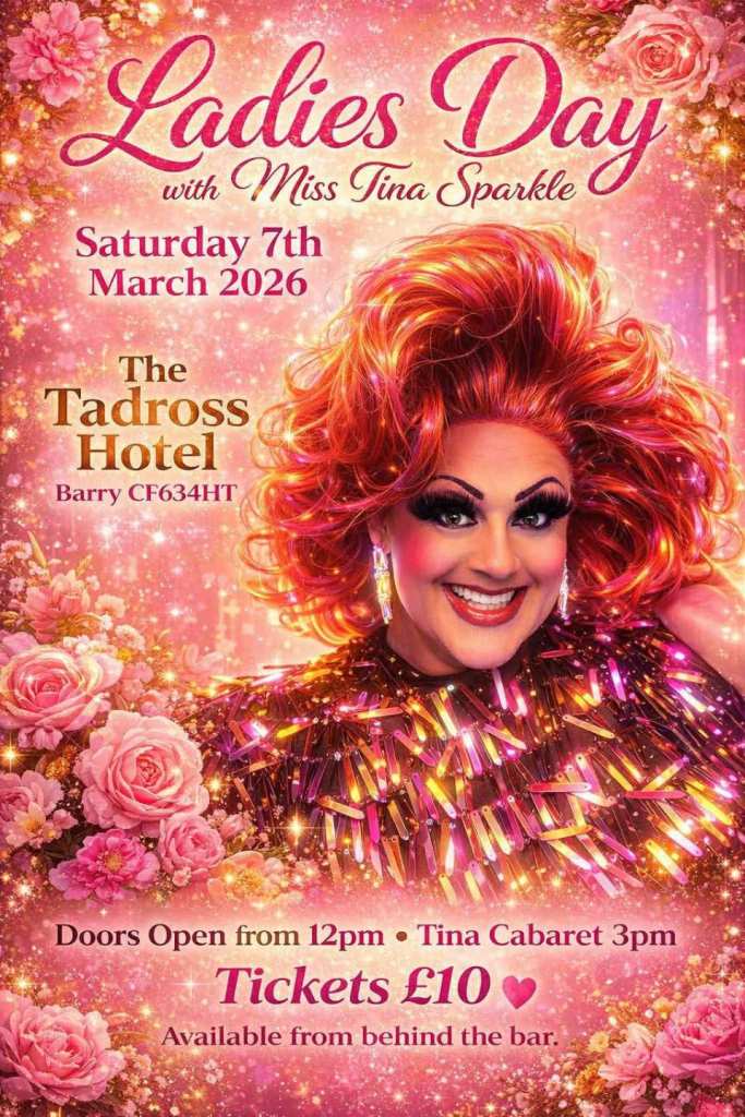 Ladies. Come and enjoy ladies days that are taking place around Barry Venues in March 2026. Tadross Hotel (Bassett) 7th March. Barry Dock Liberal Club 14th March. Tickets for events £10 each. Make sure you get your tickets as they're selling out fast.