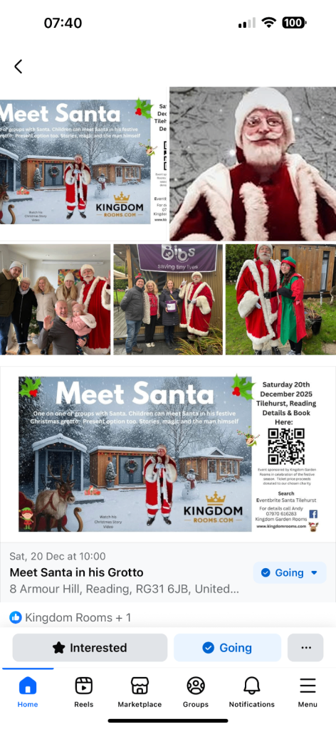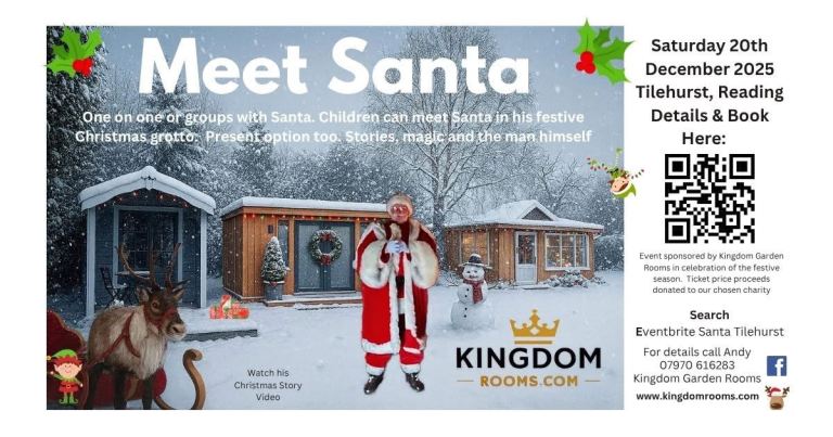 He's back... Santa has kindly agreed to visit and meet the children of Reading on Saturday 20th December at Kingdom Garden Rooms. He will be magically transforming one of our display buildings into a fabulous Christmas Grotto. With ticket proceeds donated to charity this is a beautiful experience for a child or groups able meet the main man and discover just how much he knows about your Christmas dreams. Plus, receive your own individual gift.