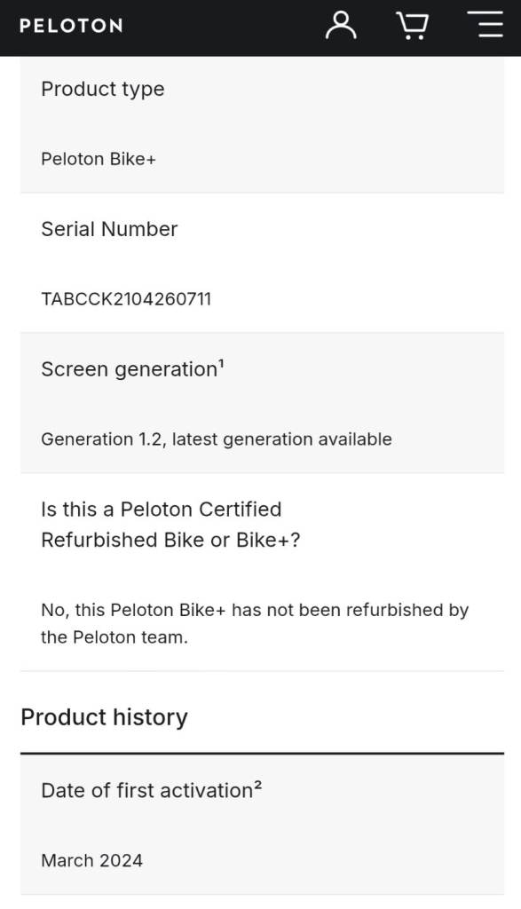 New peloton bike plus. Purchased in March 2024 and was only used once to test it out when first purchased. In immaculate unmarked new condition in perfect working order. Serial number (TABCCK2104260711) can be checked on pelotons website for full details.