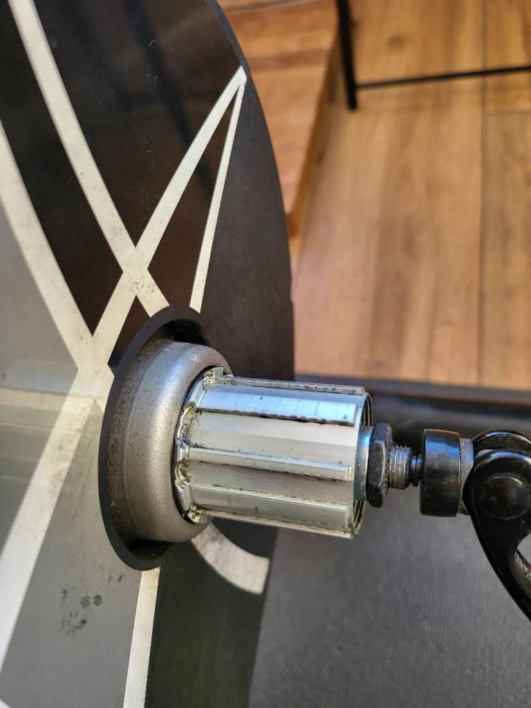 Fully functional indoor bike turbo. I'm selling this because I upgraded to a different model. There is minor wear on the freehub, this won't affect use at all - please see the photo.