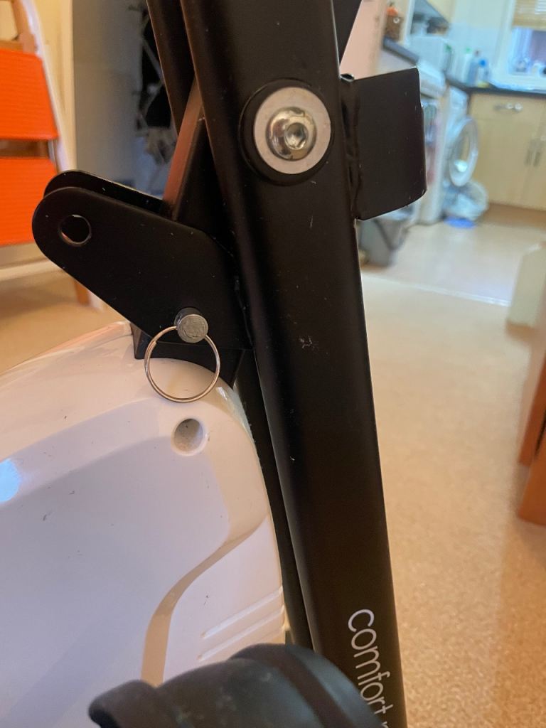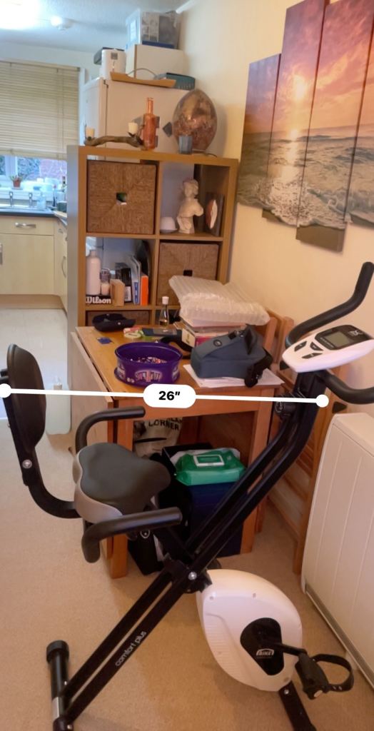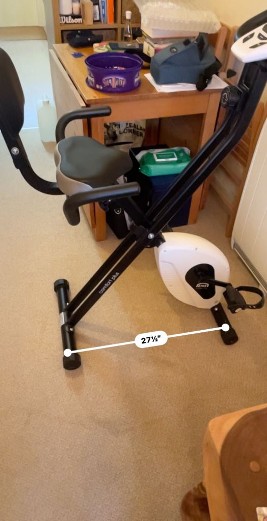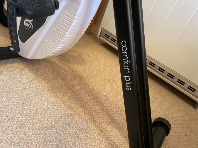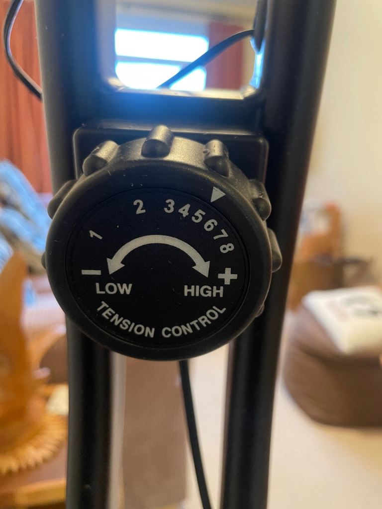 Used but in good working condition. Foldable. Comfy padded seat and backrest. Working display for Time/Speed/Distance/Calories. Adjustable tension control. Wheels under front bar to assist is moving.