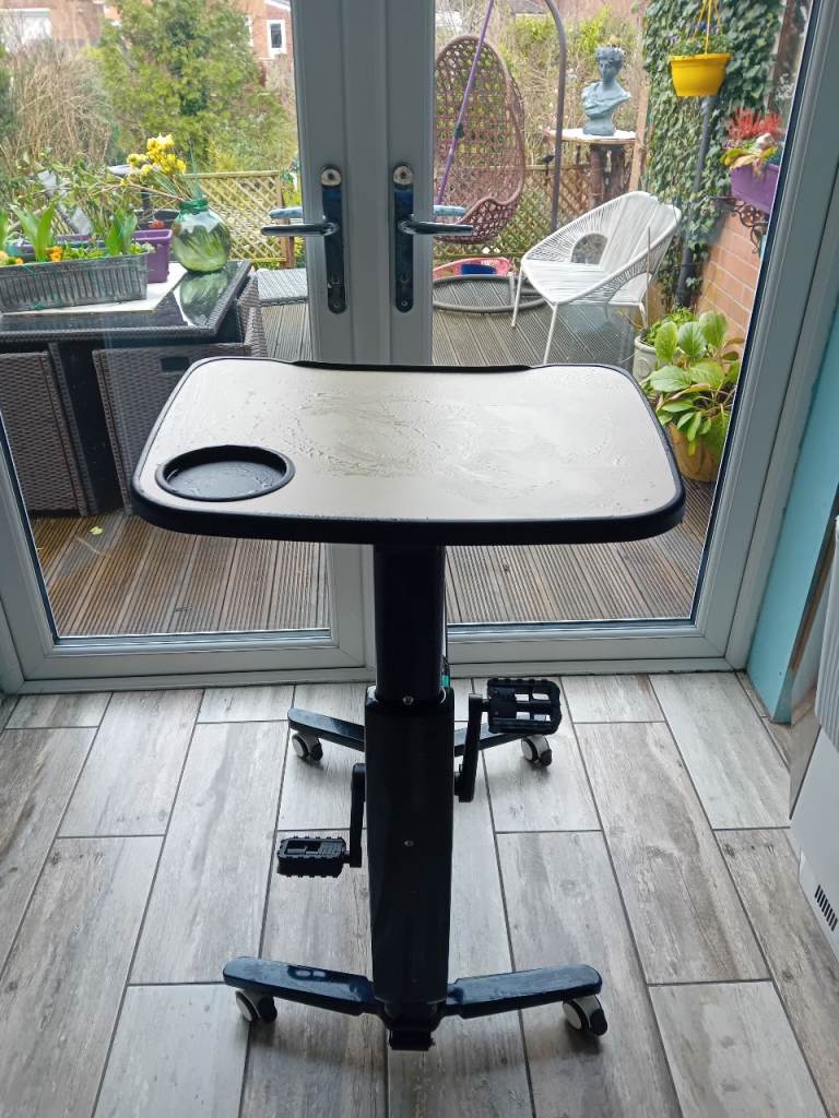Exercise bike with desk,great when working from home,excellent condition, place laptop and cycle, also can be used as standing desk,already assembled, can deliver for free,