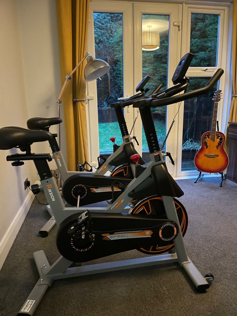 Adjustable magnetic resistance bikes with display, fully adjustable seat post and seat and handlebars. Tablet and phone holder and water bottle holder. Bought in December one used twice the other once, as new.