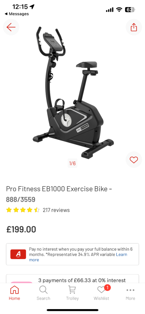 ProFitness exercise bike bought from Argos last year and barely used, still in perfect condition. Originally bought for £199.