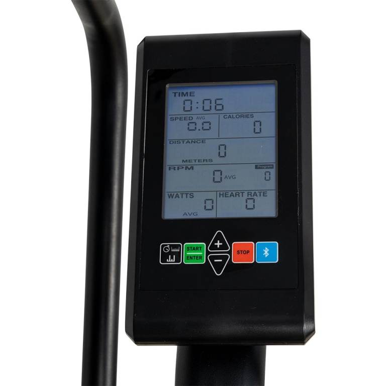 · Crystal clear display shows time, distance, calories, watts, speed, RPM